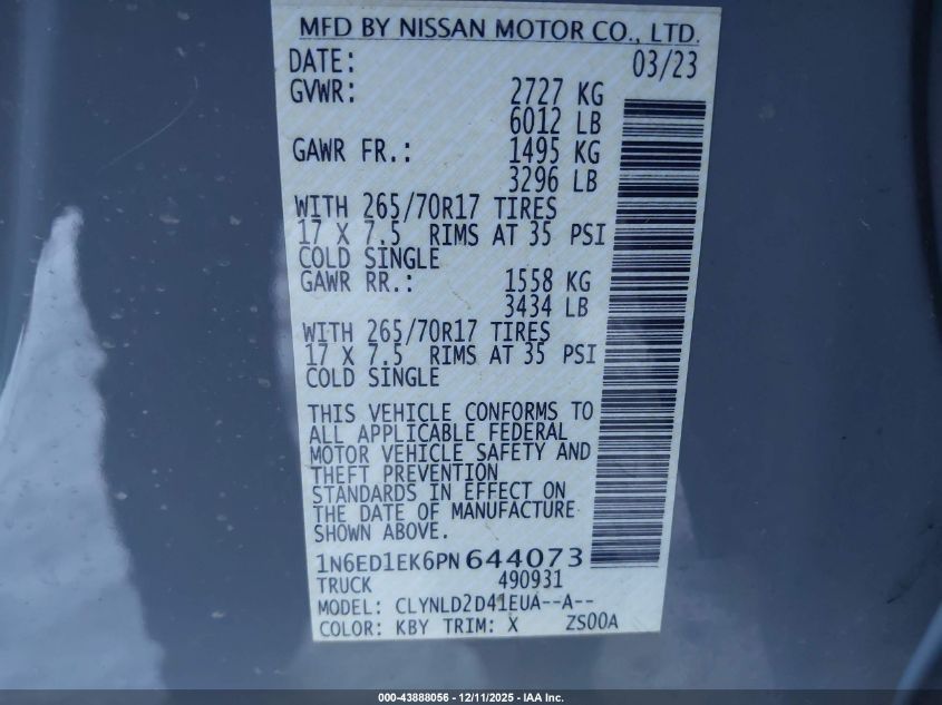 2023 NISSAN FRONTIER 2023 року Бензин, 3.8, Повний привід, vin - 1N6ED1EK6PN644073 з США