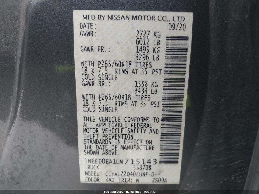2020 NISSAN FRONTIER S