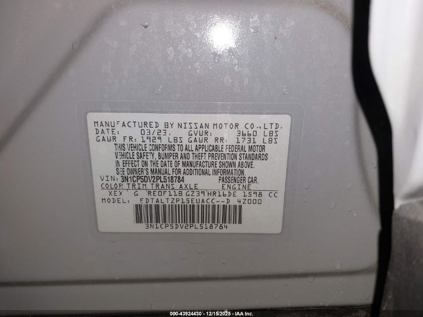 2023 NISSAN KICKS 2023 року Бензин, 1.6, Передній привід, vin - 3N1CP5DV2PL518784 з США