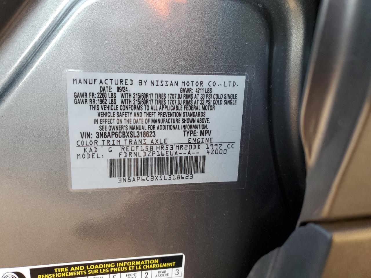 2025 NISSAN KICKS 2025 року Бензин, 2.0, Повний привід, vin - 3N8AP6CBXSL318623 з США