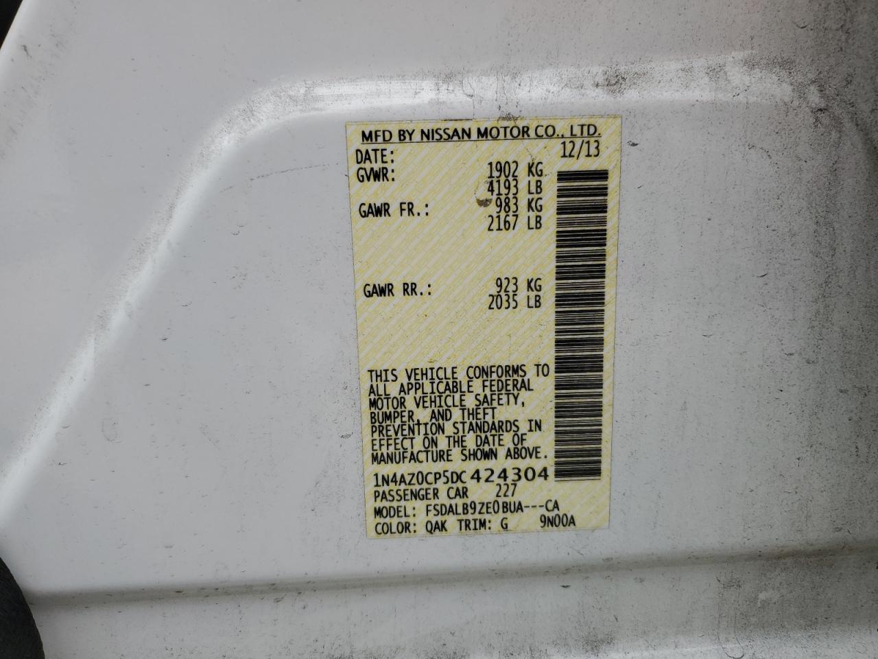 Колір БілийЦиліндри UVIN 1N4AZ0CP5DC424304Стан Заводиться та їде (перевірено)Ушкодження Передня або задняДата аукціону 2025-12-09 AutoRIA