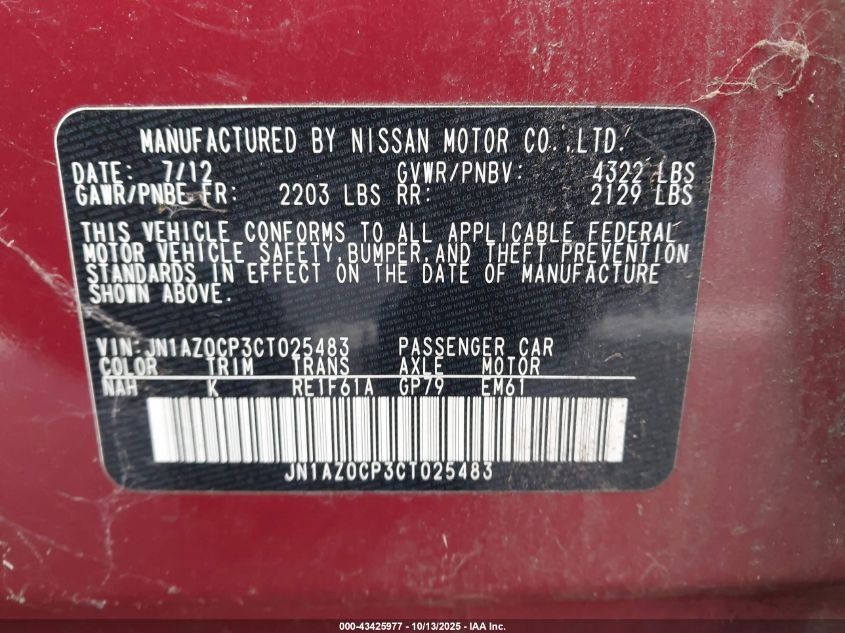 Колір ЧервонийПривід Передній привідVIN JN1AZ0CP3CT025483Стан НевідомоУшкодження Задня AutoRIA