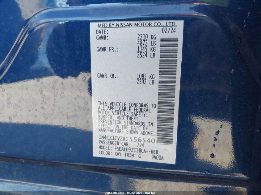 2024 NISSAN LEAF 2024 року Електричний, U, Передній привід, vin - 1N4CZ1CV2RC****** з США