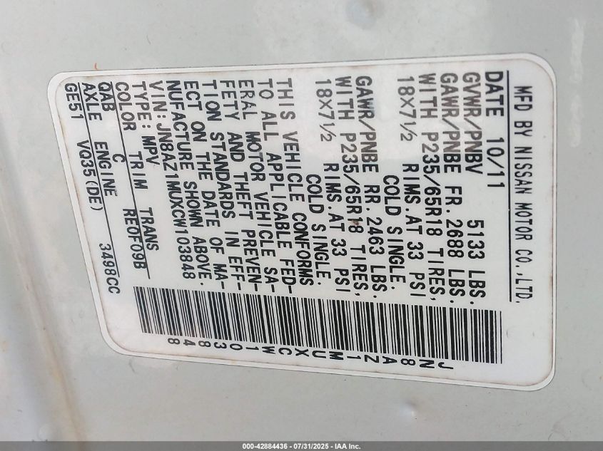 2012 NISSAN MURANO S