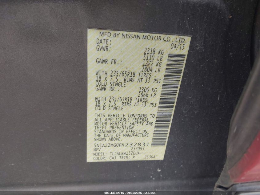 2015 NISSAN MURANO S