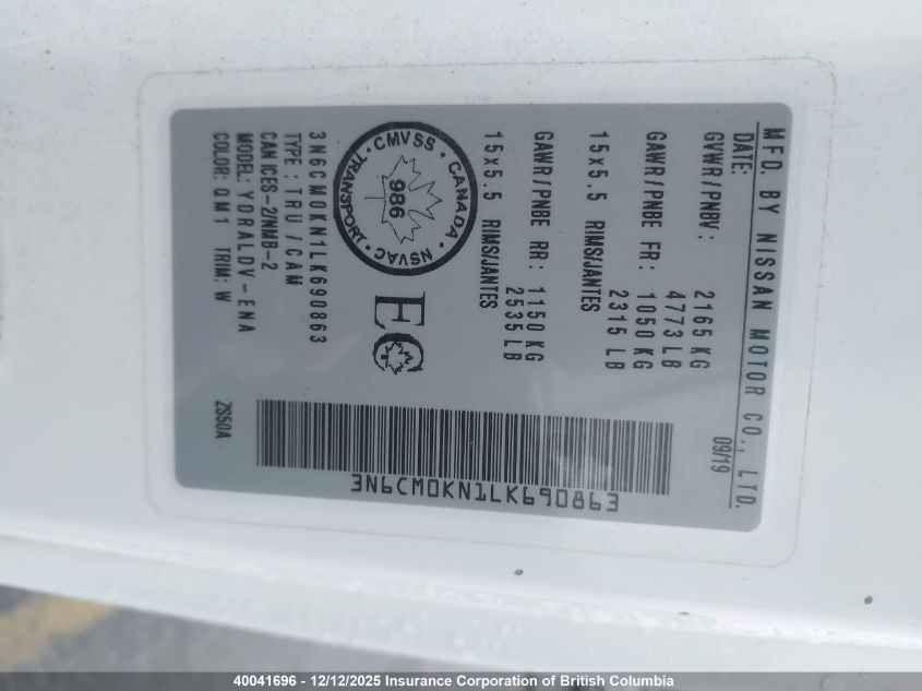 2020 NISSAN NV200 2.5S