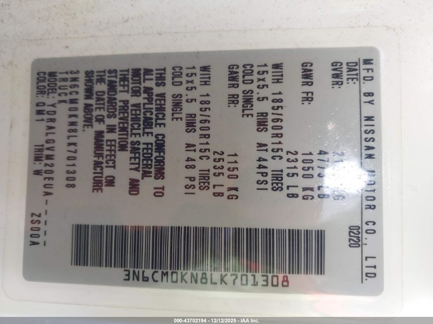 2020 NISSAN NV200 2.5S