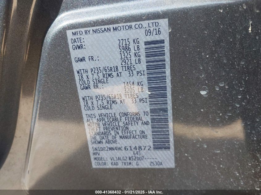 2017 NISSAN PATHFINDER S