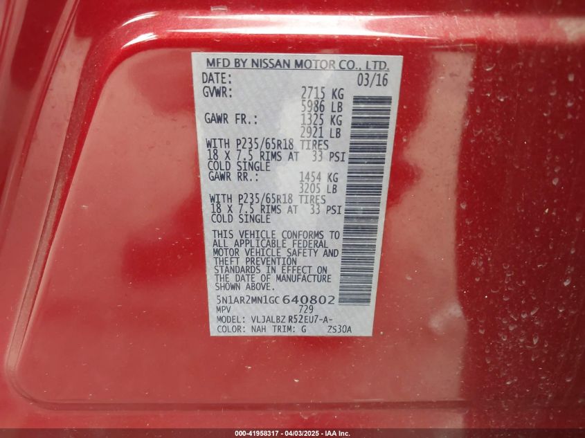 2016 NISSAN PATHFINDER S