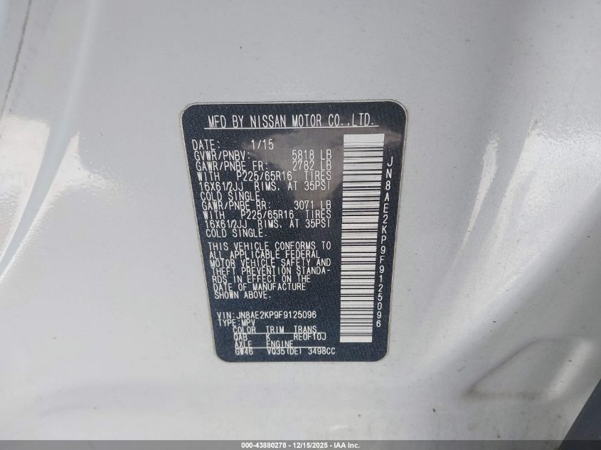 2015 NISSAN QUEST S