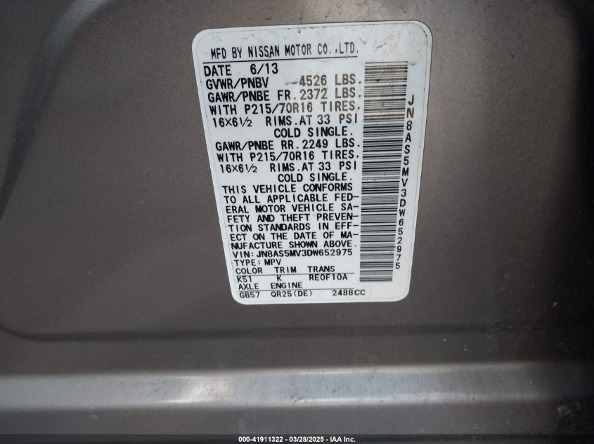 2013 NISSAN ROGUE 2013 року Бензин, 2.5, Повний привід, vin - JN8AS5MV3DW652975 з США