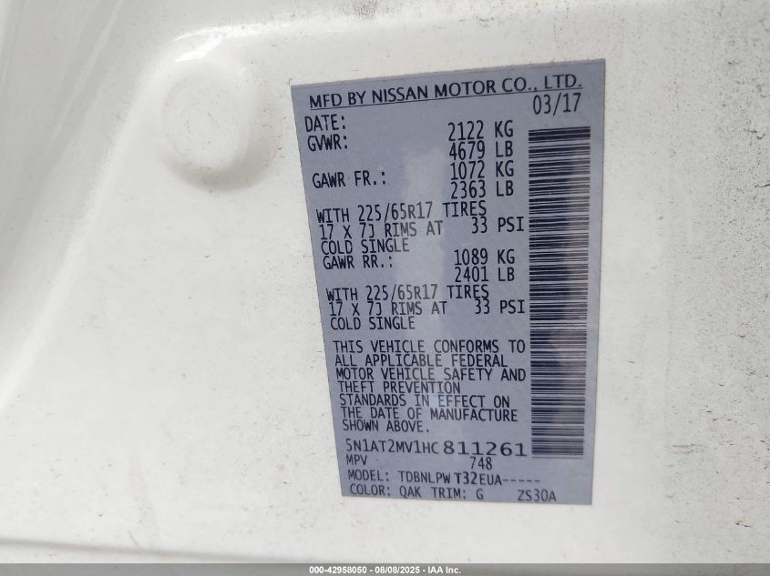 2017 NISSAN ROGUE 2017 року Бензин, 2.5, Повний привід, vin - 5N1AT2MV1HC811261 з США