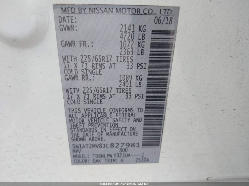 2018 NISSAN ROGUE 2018 року Бензин, 2.5, Повний привід, vin - 5N1AT2MV8JC827981 з США