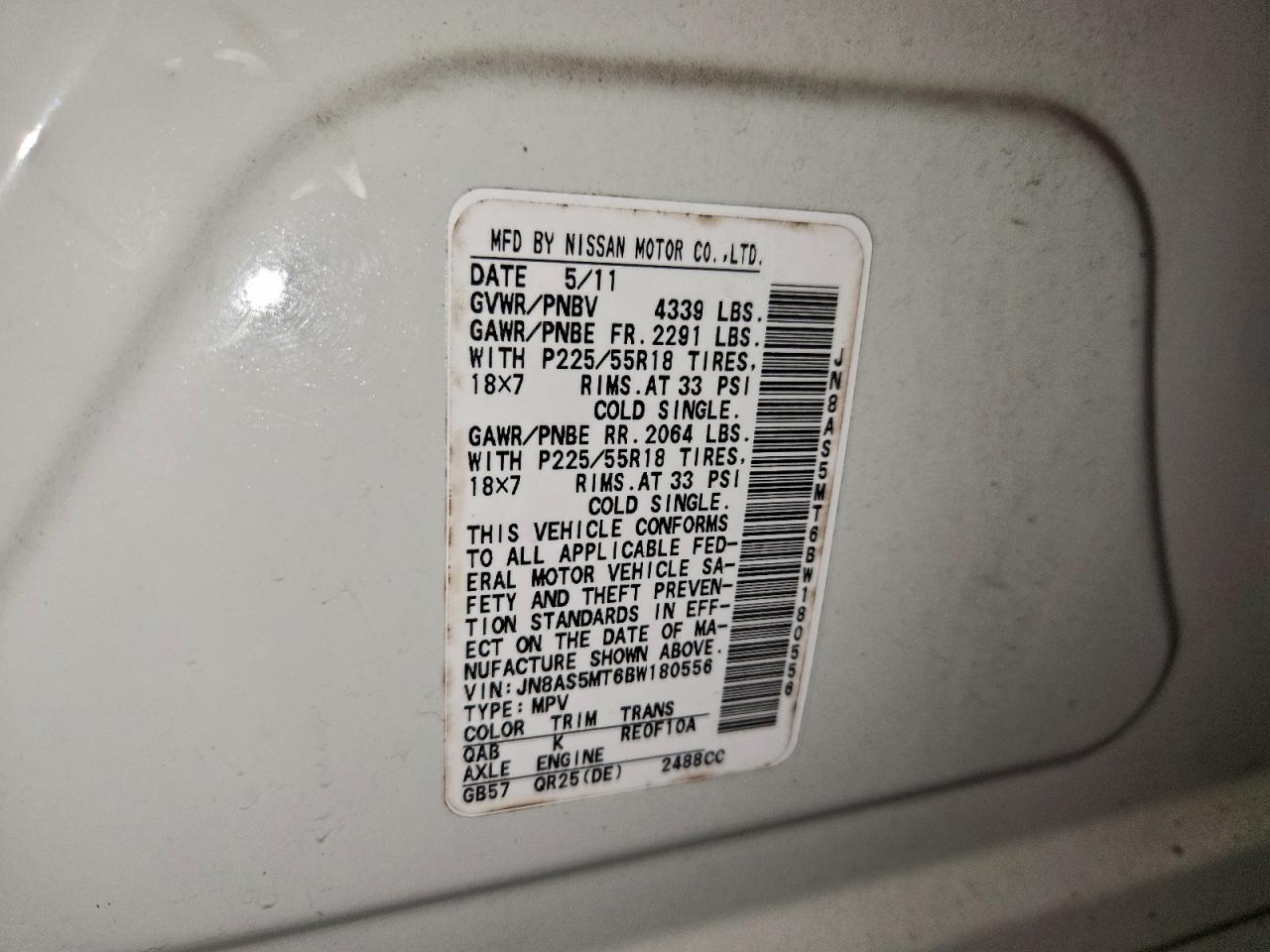 Колір БілийЦиліндри 4VIN JN8AS5MT6BW180556Стан Заводиться та їде (перевірено)Ушкодження Передня або задня AutoRIA
