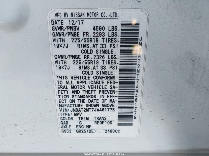 2018 NISSAN ROGUE 2018 року Бензин, 2.5, Передній привід, vin - JN8AT2MT7JW461775 з США