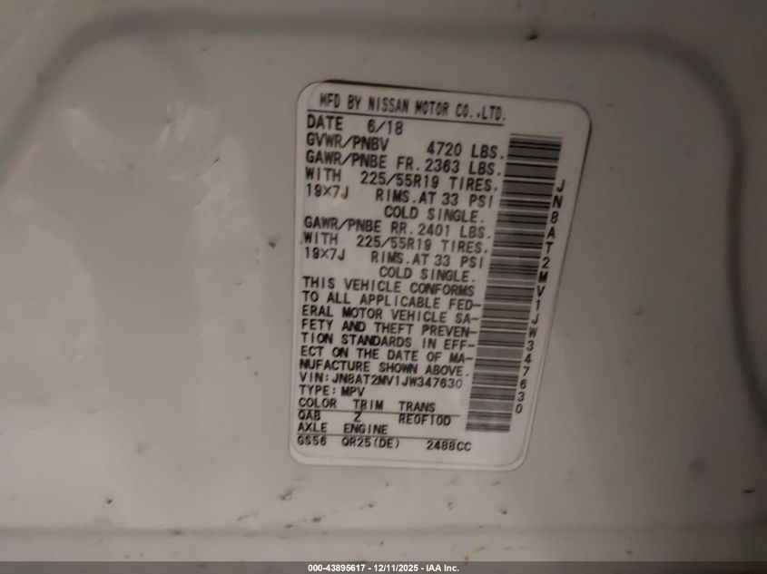 2018 NISSAN ROGUE 2018 року Бензин, 2.5, Повний привід, vin - JN8AT2MV1JW347630 з США
