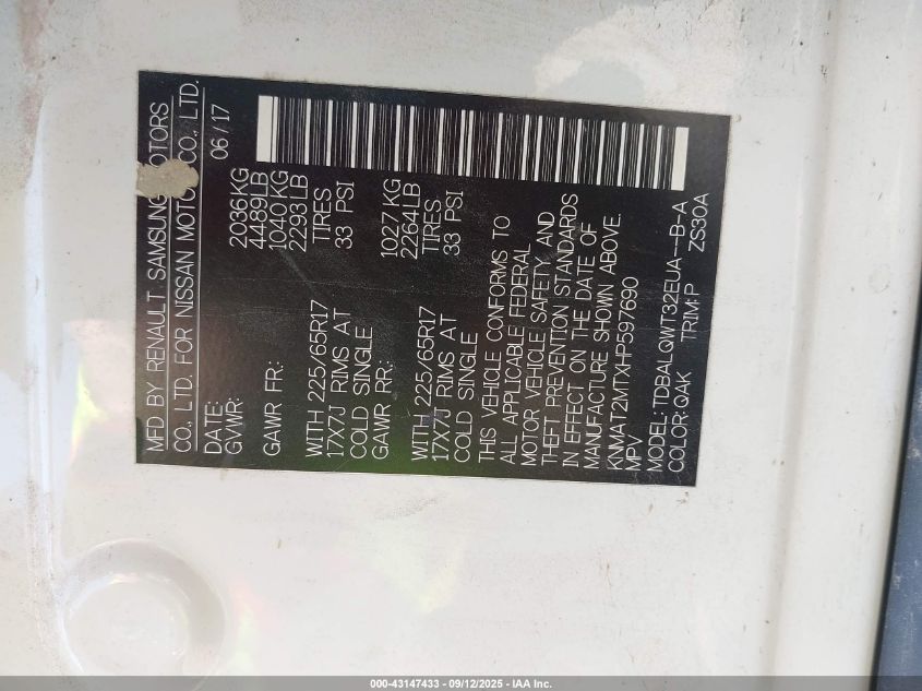 2017 NISSAN ROGUE 2017 року Бензин, 2.5, Передній привід, vin - KNMAT2MTXHP597690 з США