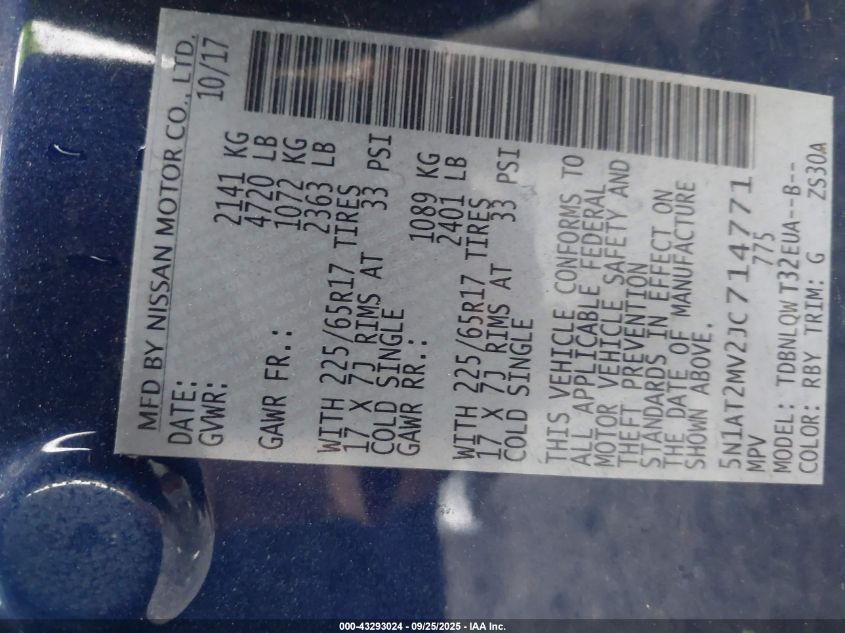 2018 NISSAN ROGUE 2018 року Бензин, 2.5, Повний привід, vin - 5N1AT2MV2JC714771 з США
