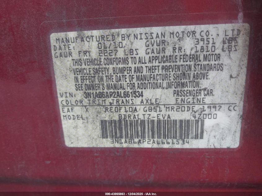2010 NISSAN SENTRA 2.0