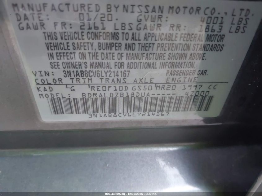 2020 NISSAN SENTRA 2020 року Бензин, 2.0, Передній привід, vin - 3N1AB8CV6LY214167 з США