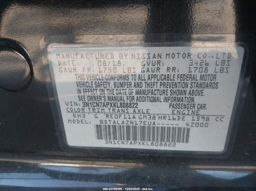 2019 NISSAN VERSA S