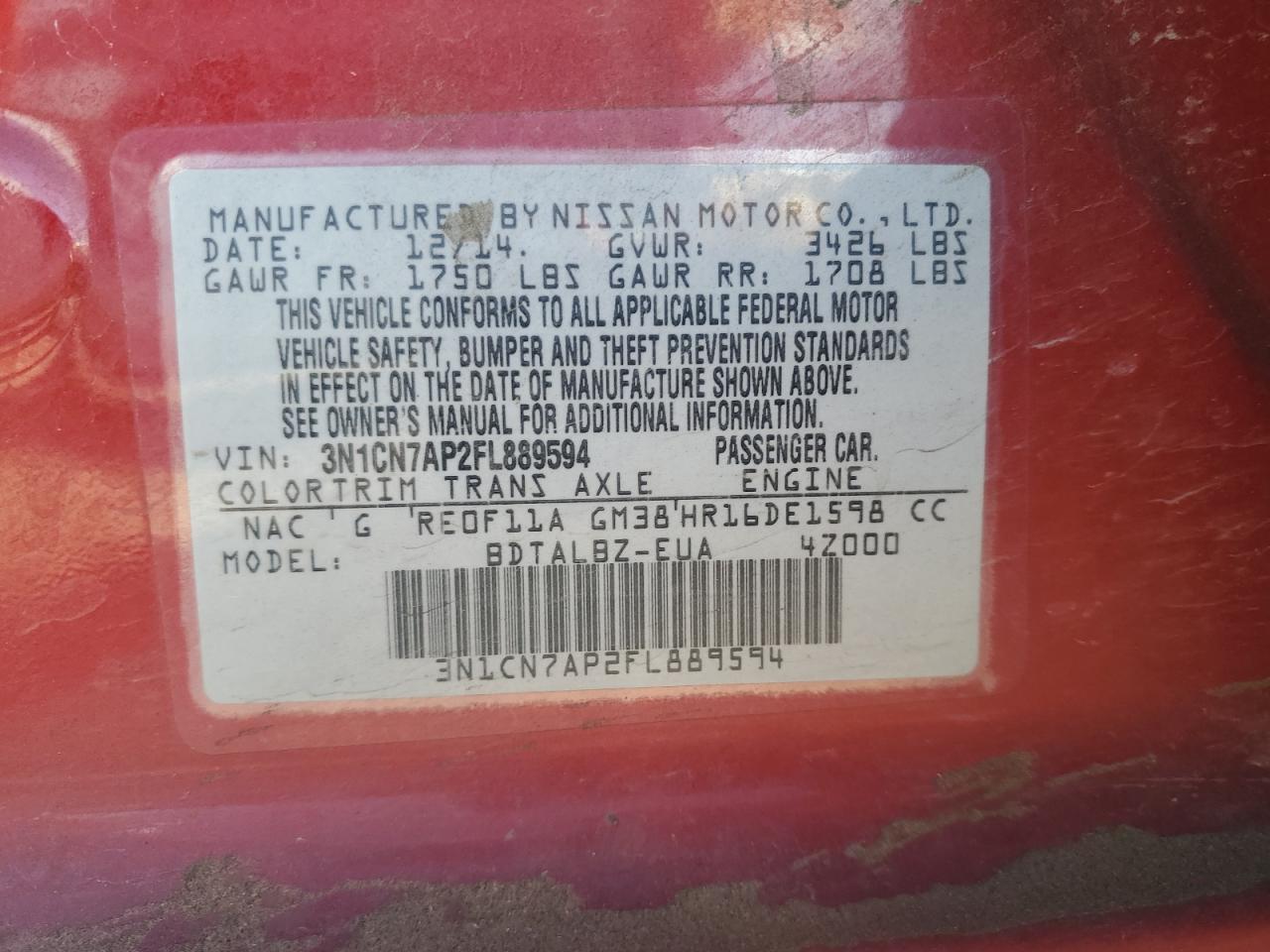 Колір ЧервонийЦиліндри 4VIN 3N1CN7AP2FL889594Стан НевідомоУшкодження Передня або задня AutoRIA