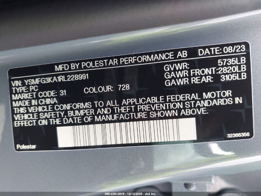 2024 POLESTAR 2 2024 року Електричний, 0.0, Повний привід, vin - YSMFG3KA1RL228991 з США