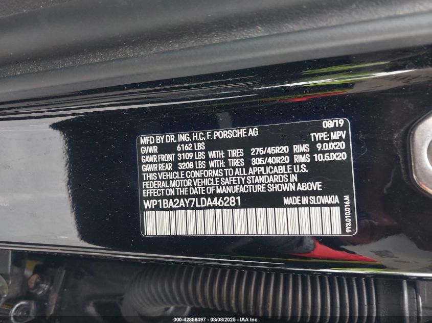 2020 PORSCHE CAYENNE 2020 року Бензин, 3.0, Повний привід, vin - WP1BA2AY7LD****** з США