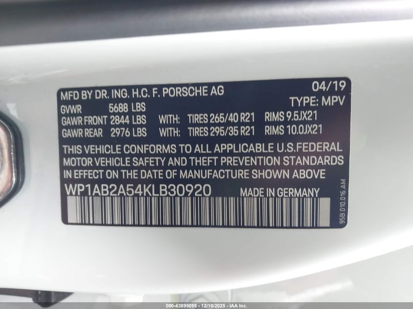 Колір БілийЦиліндри 6Привід Повний привідVIN WP1AB2A54KLB30920Стан СтаціонарноУшкодження Передня або задня AutoRIA