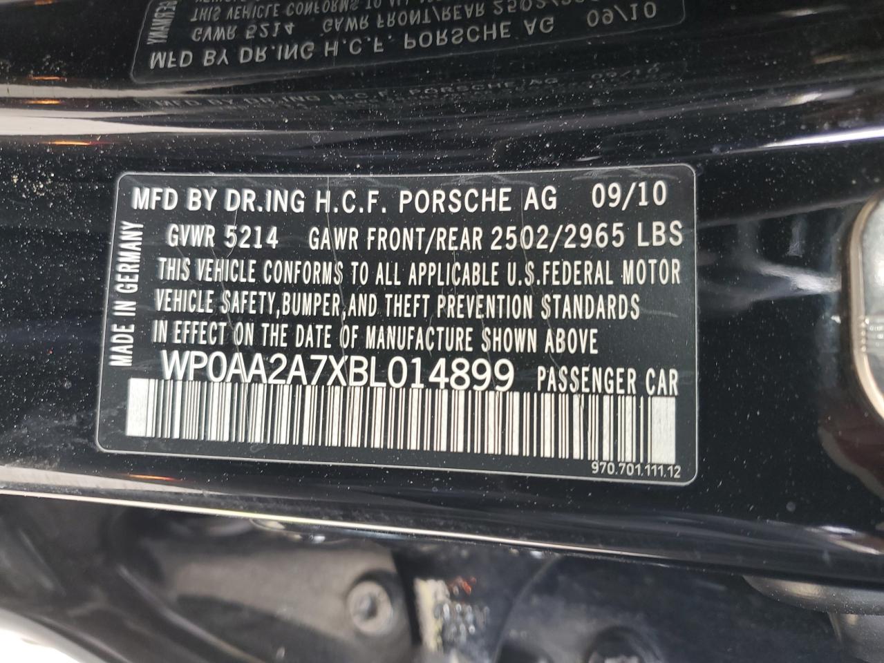 Колір ЧорнийЦиліндри 6Привід Задній привідVIN WP0AA2A7XBL014899Стан Заводиться та їде (перевірено)Ушкодження НизДата аукціону 2025-06-17