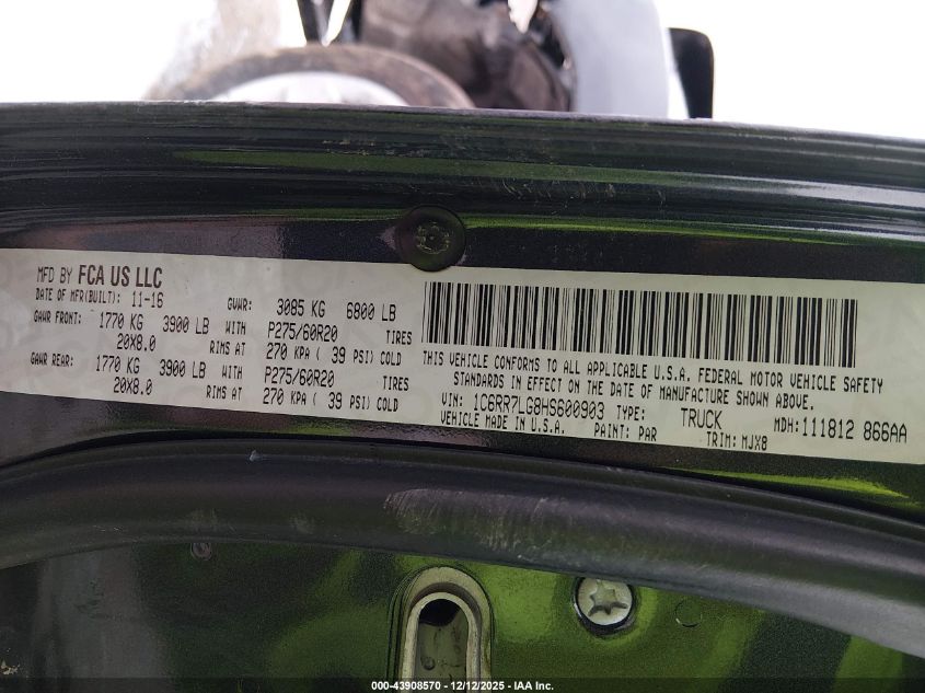 2017 RAM 1500 2017 року Бензин, 3.6, Повний привід, vin - 1C6RR7LG8HS600903 з США