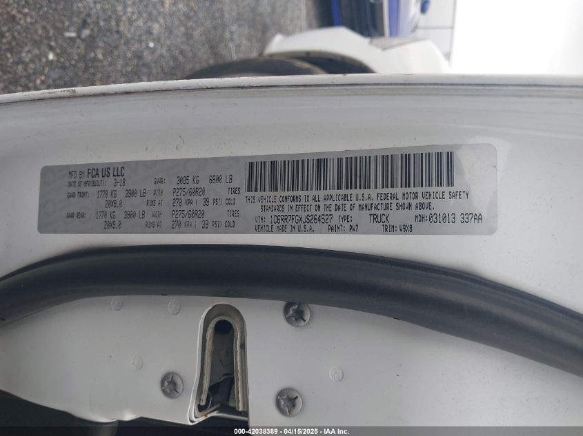 2018 RAM 1500 2018 року Бензин, 3.6, Повний привід, vin - 1C6RR7FGXJS264527 з США