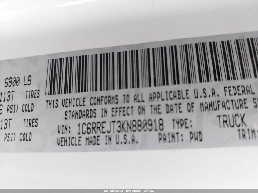 2019 RAM 1500 2019 року Бензин, 5.7, , vin - 1C6RREJT3KN880918 з США