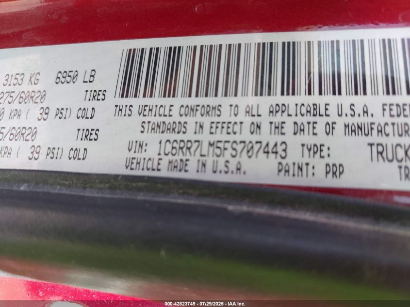 Колір ЧервонийЦиліндри 6Привід Повний привідVIN 1C6RR7LM5FS******Стан НевідомоУшкодження Передня або задняДата аукціону 2025-09-18