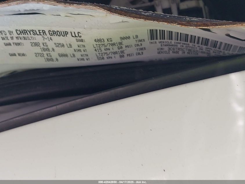 Колір БілийЦиліндри 8Привід Повний привідVIN 3C6TR5CT8EG******Стан НевідомоУшкодження Ліва сторонаДата аукціону 2025-09-10