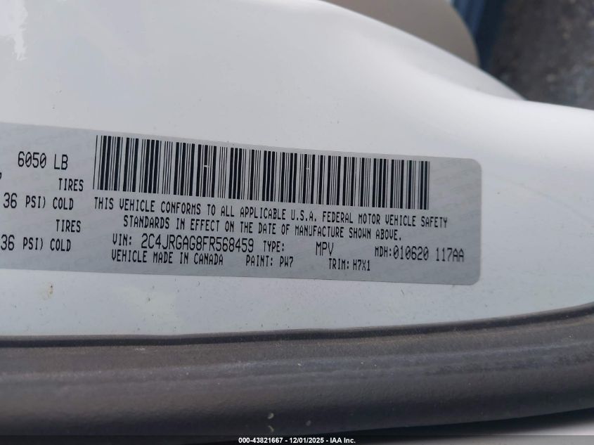 Колір БілийЦиліндри 6Привід Передній привідVIN 2C4JRGAG8FR568459Стан Заводиться та їде (перевірено)Ушкодження Задня