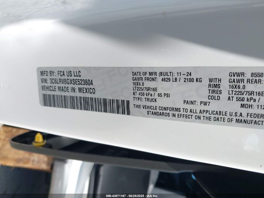 2025 RAM PROMASTER 1500 2025 року Бензин, 3.6, Передній привід, vin - 3C6LRVBGXSE523604 з США