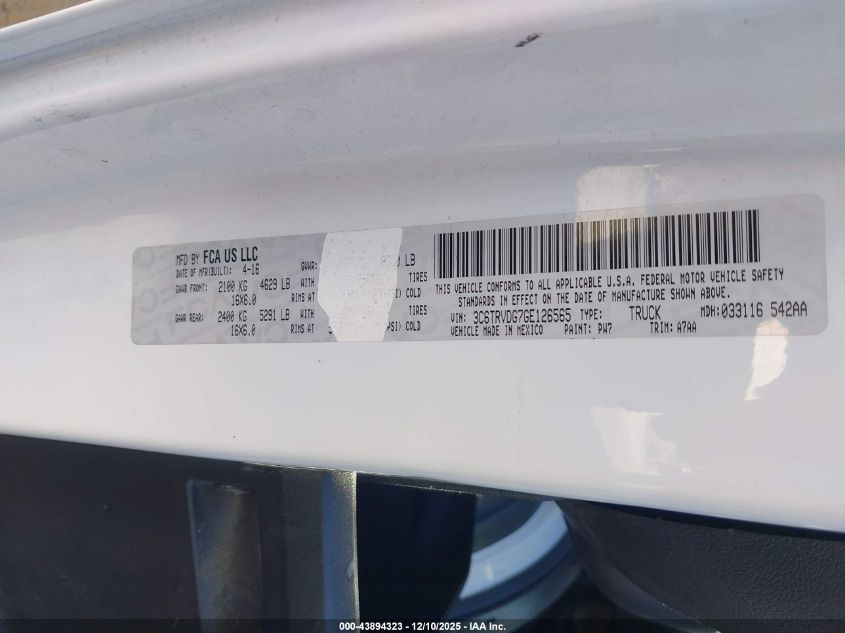 Колір БілийЦиліндри 6Привід Передній привідVIN 3C6TRVDG7GE126565Стан СтаціонарноУшкодження Передня або задня
