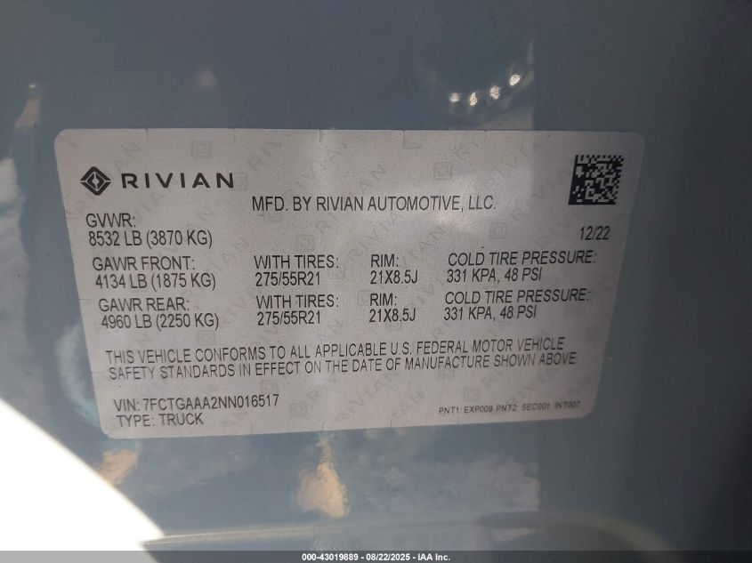 2022 RIVIAN R1T ADVENTURE