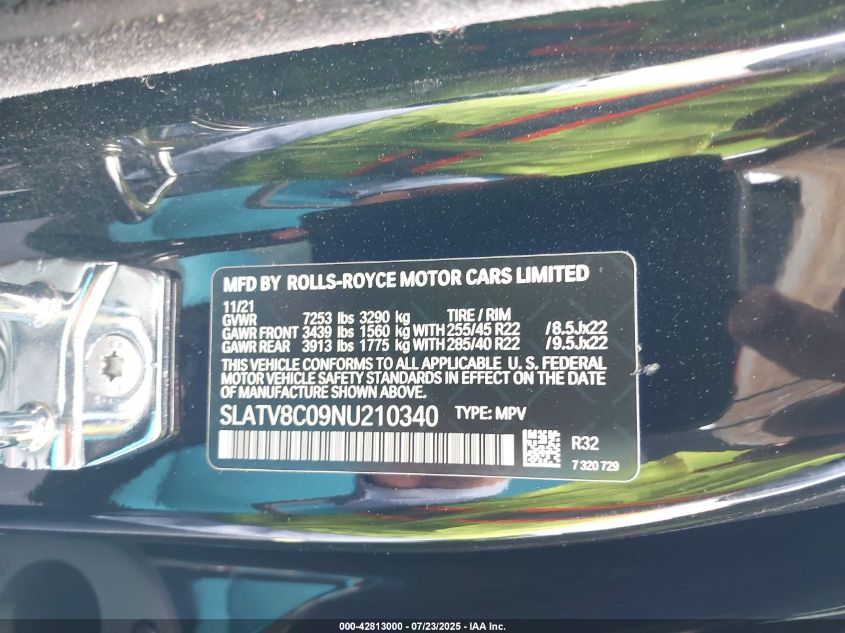 2022 ROLLS-ROYCE CULLINAN 2022 року Бензин, 6.7, Повний привід, vin - SLATV8C09NU****** з США