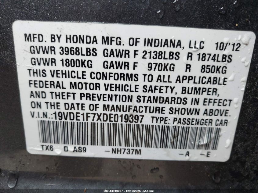 Цвет ЧерныйЦилиндры 4Привод Передний приводVIN 19VDE1F7XDE019397Состояние Заводится и едет (проверено)Повреждения Передняя или задняя AutoRIA
