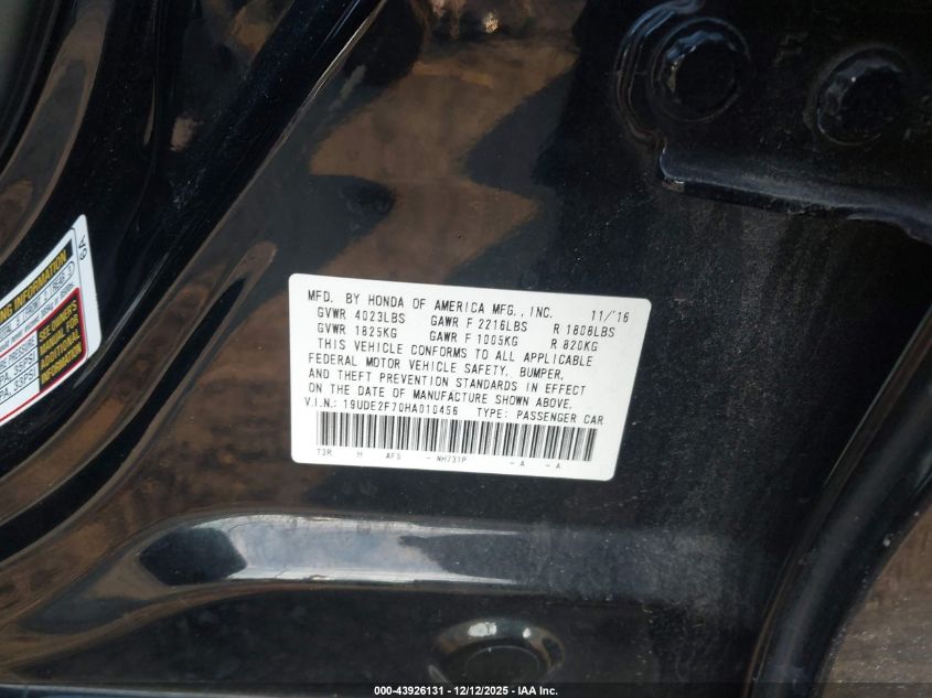 2017 ACURA ILX 2017 року Бензин, 2.4, Передний привод, vin - 19UDE2F70HA010456 из США