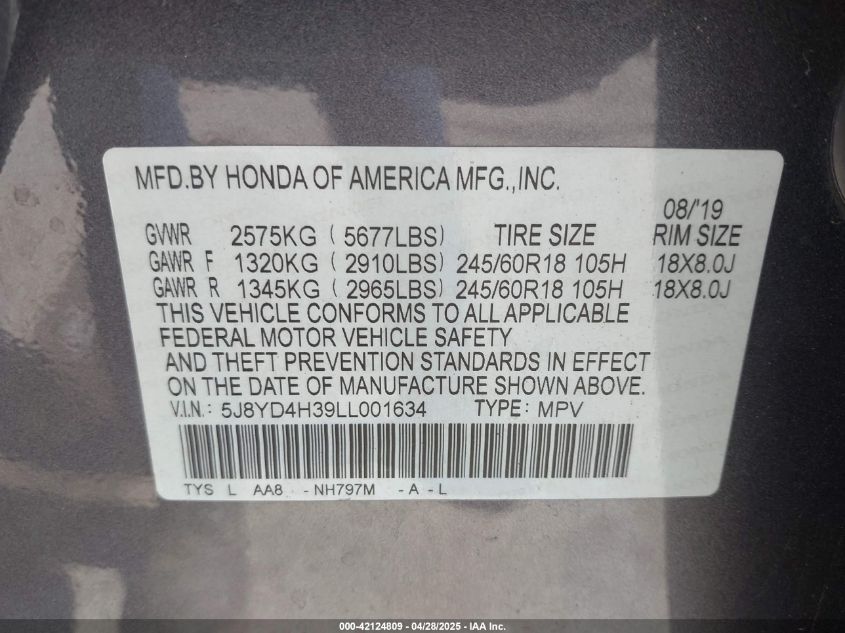 2020 ACURA MDX 2020 року Бензин, 3.5, Полный привод, vin - 5J8YD4H39LL001634 из США