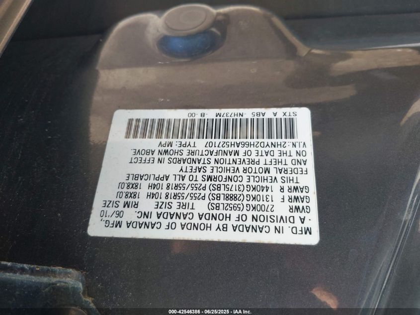 Цвет СерыйЦилиндры 6Привод Полный приводVIN 2HNYD2H66AH******Состояние НеизвестноПовреждения Передняя или задняяДата аукциона 2025-09-05