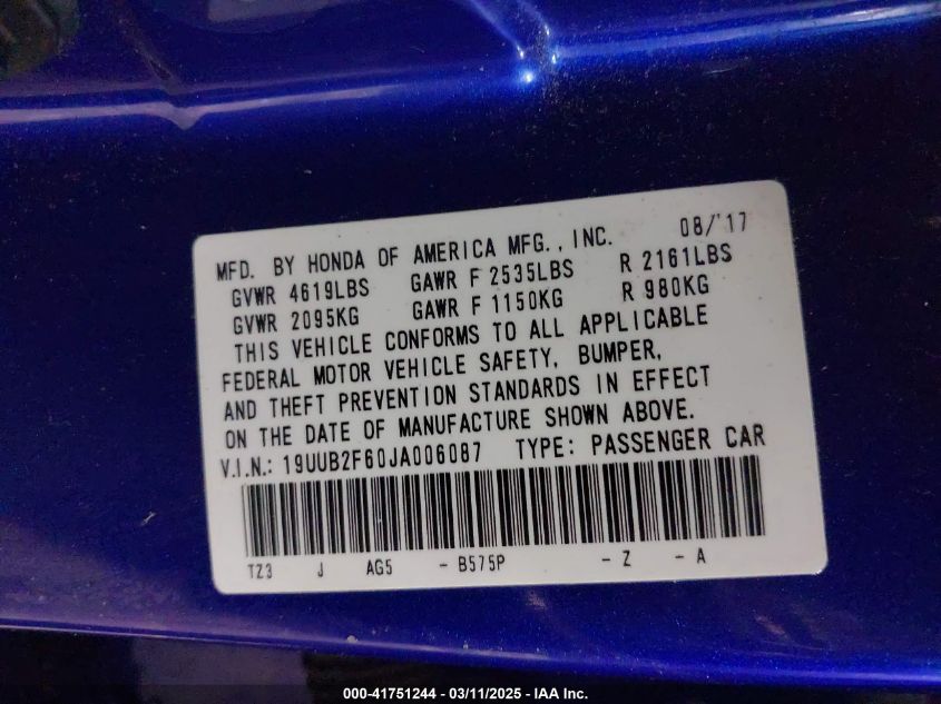 Цвет СинийЦилиндры 6Привод Передний приводVIN 19UUB2F60JA******Состояние НеизвестноПовреждения Левая сторонаДата аукциона 2025-09-02