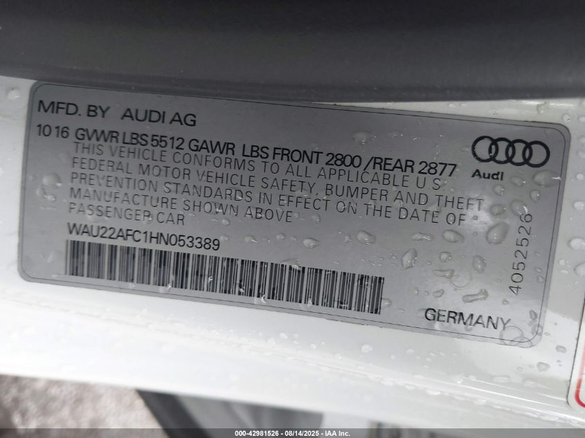 2017 AUDI A7 2017 року Бензин, 3.0, Полный привод, vin - WAU22AFC1HN****** из США