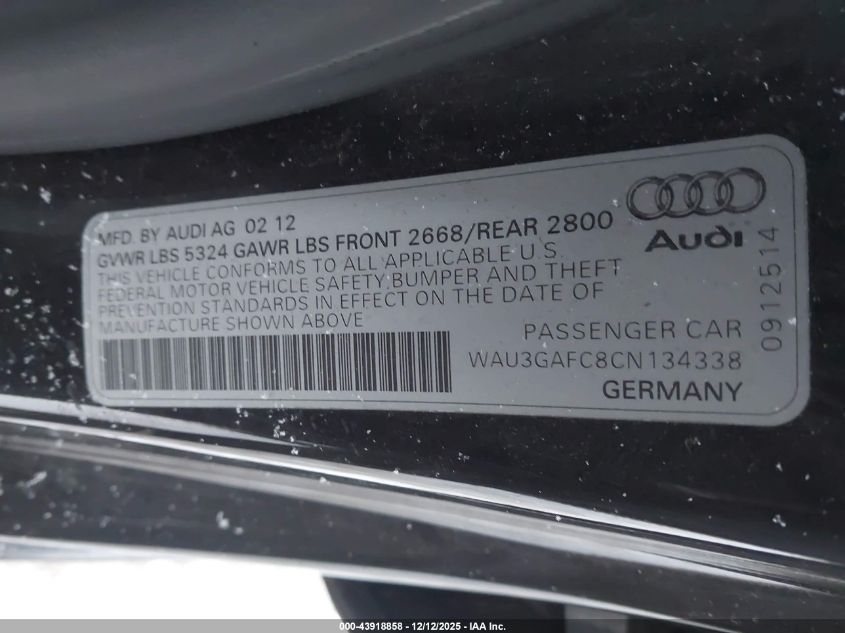 2012 AUDI A7 2012 року Бензин, 3.0, Полный привод, vin - WAU3GAFC8CN134338 из США