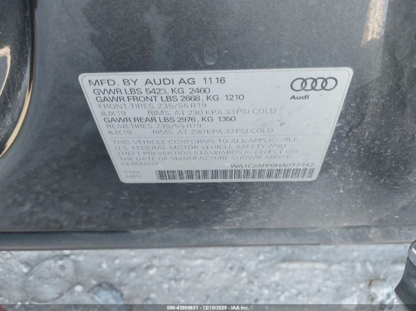 2017 AUDI Q5 2017 року Бензин, 2.0, Полный привод, vin - WA1C2AFP6HA077442 из США