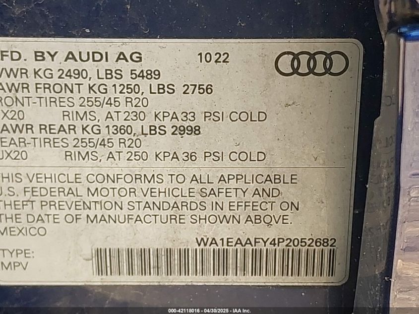 2023 AUDI Q5 2023 року Бензин, 2.0, Полный привод, vin - WA1EAAFY4P2****** из США
