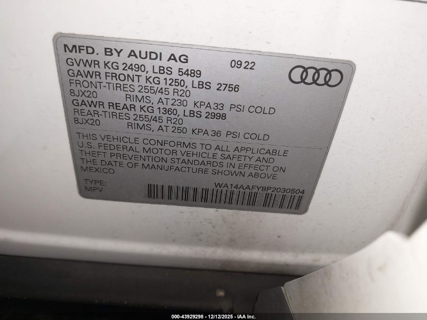 2023 AUDI Q5 SPORTBACK 2023 року Бензин, 2.0, Полный привод, vin - WA14AAFY8P2030504 из США